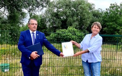 Landrat Klaus Peter Schellhaas übergibt Förderbescheid